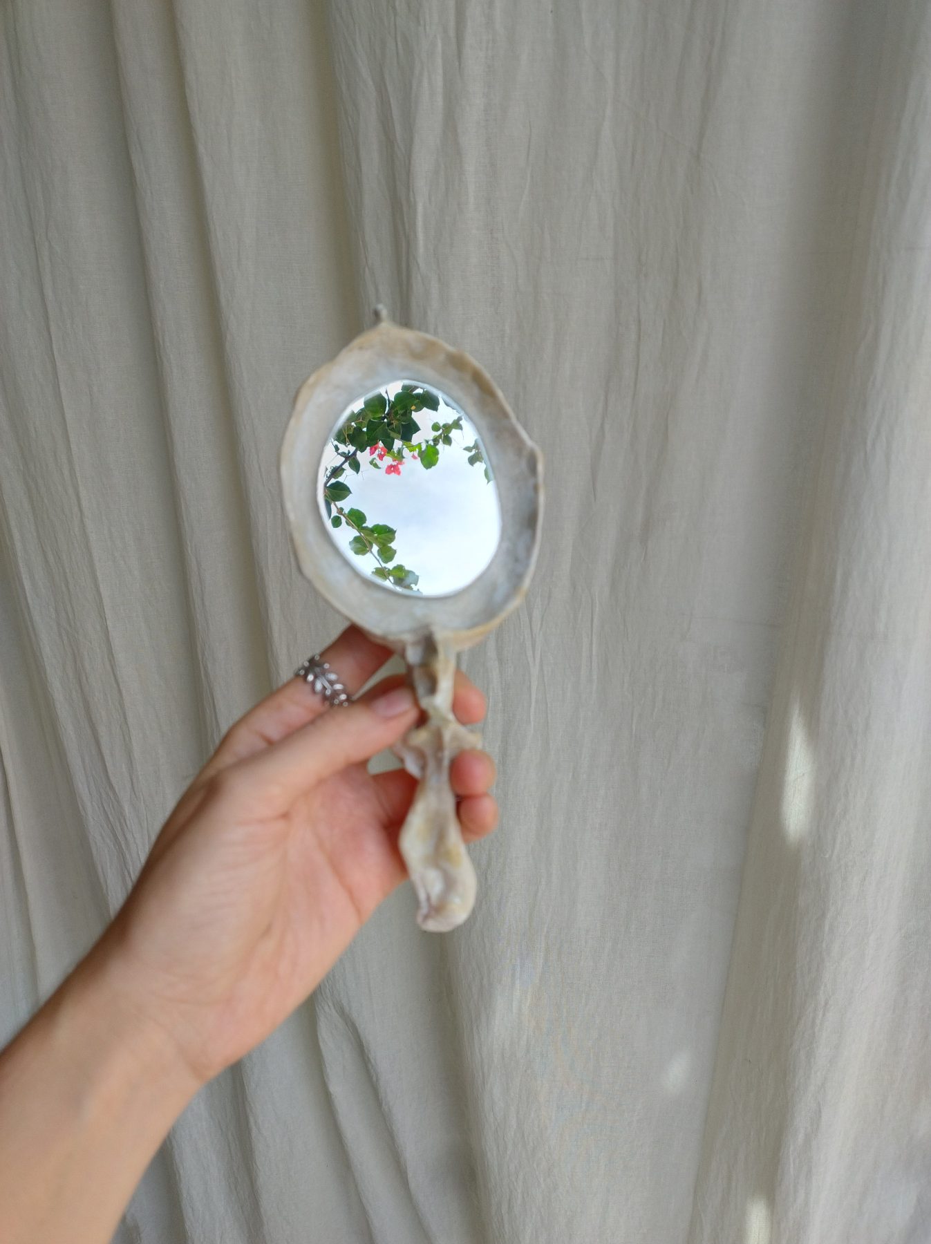Espejo de mano, puede variar la forma mínimamente ente cada pieza a la venta